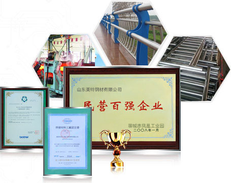 山東美特鋼材有限公司(15863566668)是常年專業(yè)從事生產(chǎn)、銷售內(nèi)外襯不銹鋼復(fù)合管,不銹鋼復(fù)合管護(hù)欄的廠家,公司擁有完整的不銹鋼及不銹鋼復(fù)合管生產(chǎn)線24條,以及各類金屬加工設(shè)備多套(數(shù)控等離子切割機(jī)、沖床、冼床等),公司還擁有獨立的鍍鋅和噴塑車間,良好地處理好鋼板表面效果。 公司優(yōu)勢:一、專業(yè)性強(qiáng)1.專業(yè)設(shè)計、制作和安裝不銹鋼復(fù)合管工程及金屬欄桿工程。集設(shè)計、生產(chǎn)、銷售與安裝為一體的完整體系。2.專業(yè)應(yīng)于:橋梁欄桿、市政建設(shè)、景觀護(hù)欄、體育器材、車輛機(jī)構(gòu)、紡織機(jī)械、醫(yī)療設(shè)備等二、質(zhì)量過硬1.通過IS09001:2000質(zhì)量體系認(rèn)證2. 獲得“全國質(zhì)量、服務(wù)、信譽(yù)AAAA及”企業(yè)稱號,“中國綠色環(huán)保建材產(chǎn)品”,“中國優(yōu)質(zhì)建材產(chǎn)品”…